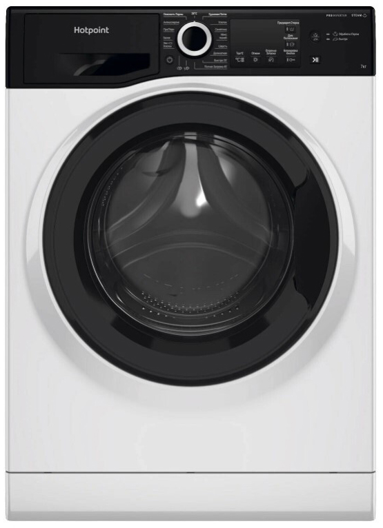 Стиральная машина Hotpoint NSB 6039 ZS VE RU белый, загрузка 6 кг, скорость отжима 1000 оборотов в минуту, Big DGT дисплей, тип мотора: PRO-Inverter, сегмент: slim