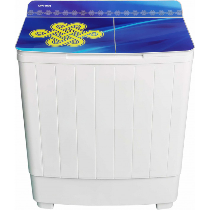 Стиральная машина OPTIMA МСП-95СТ голубой орнамент, полуавтомат, 9,5кг/6кг, мощность стирки 600 Вт, отжим 1350 об/мин, стеклянная крышка с принтом, встроенный сливной насос, фильтр от ворса