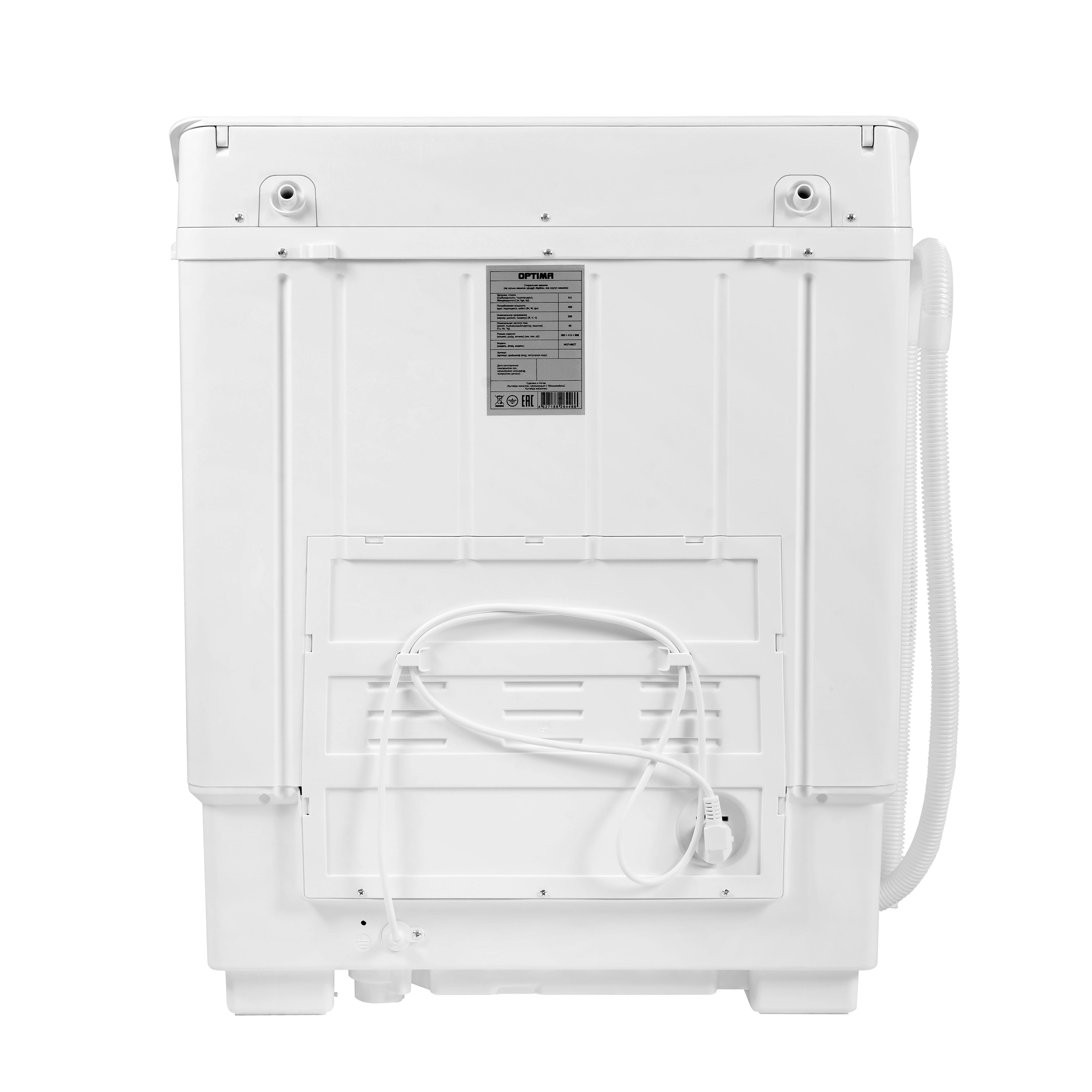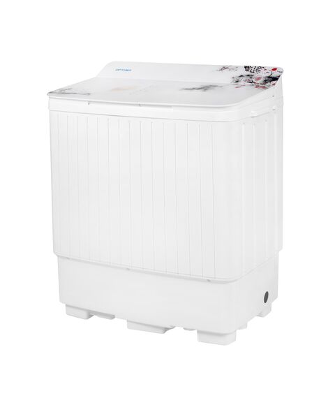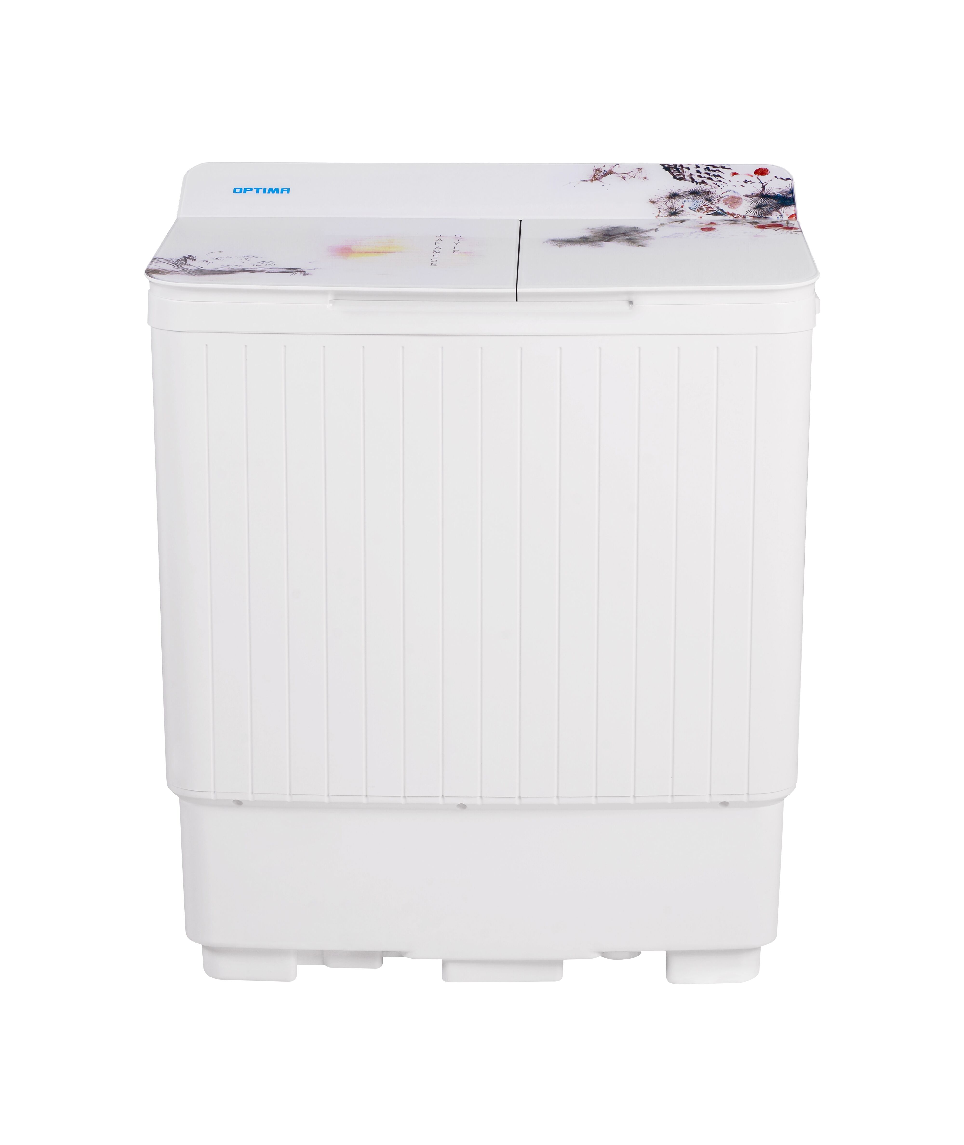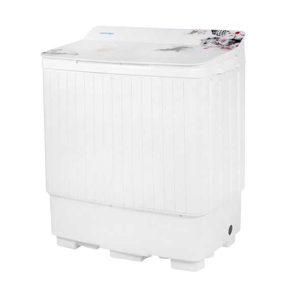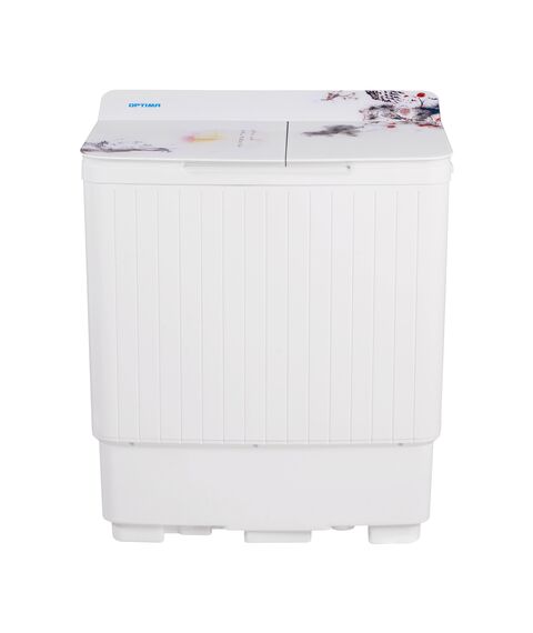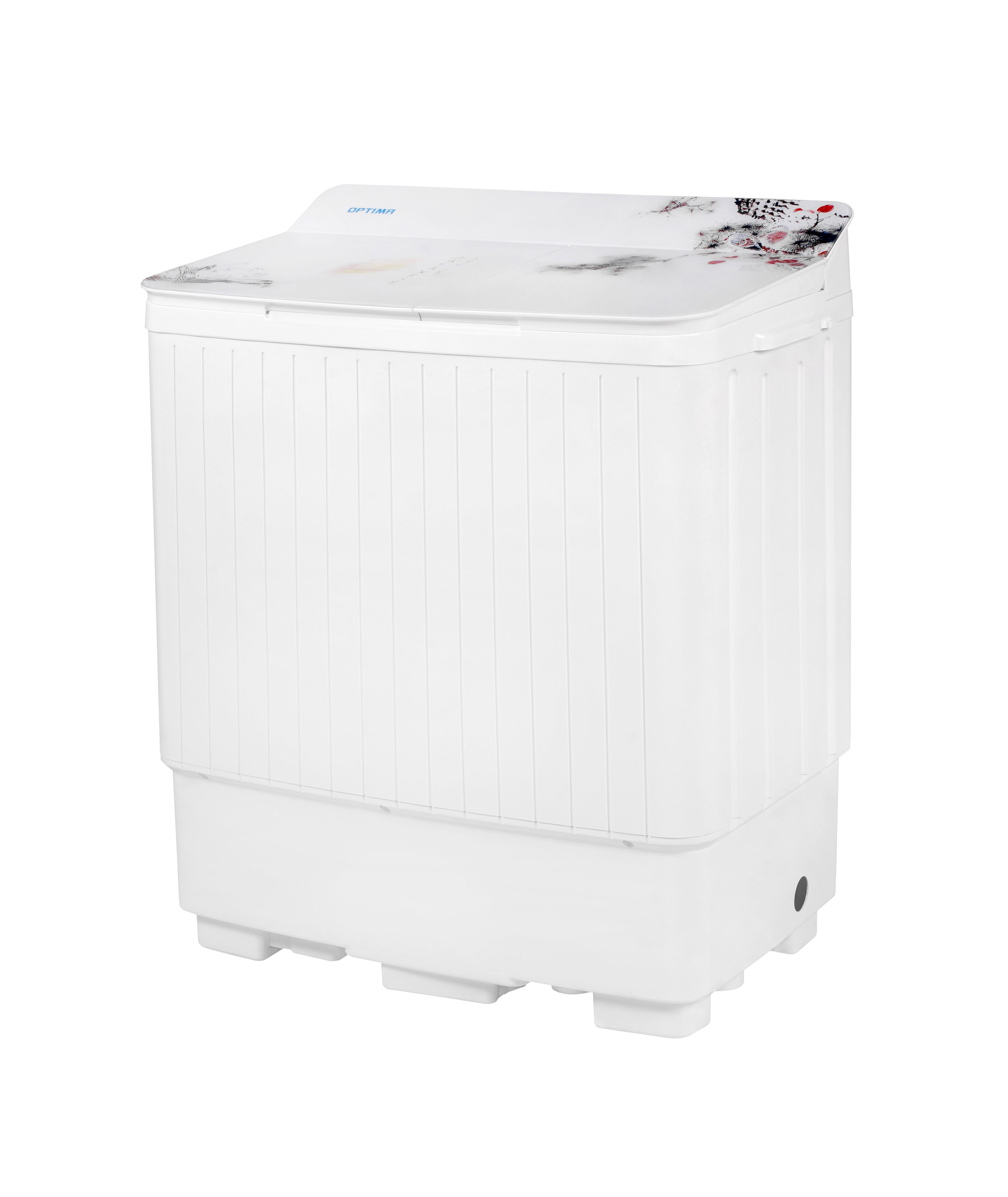 Стиральная машина OPTIMA МСП-66СТ полуавтомат, встроенный сливной насос, материал бака и центрифуги - пластик, стеклянная крышка с принтом, загрузка 6 кг/4кг, мощность стирки 480 Вт, отжим 1350 об/мин, фильтр от ворса