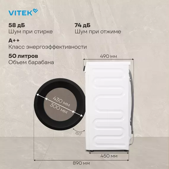 Стиральная машина Vitek VT-WSE8201 класс A+++, загр.фронтальная макс.8кг, белый, инвертор
