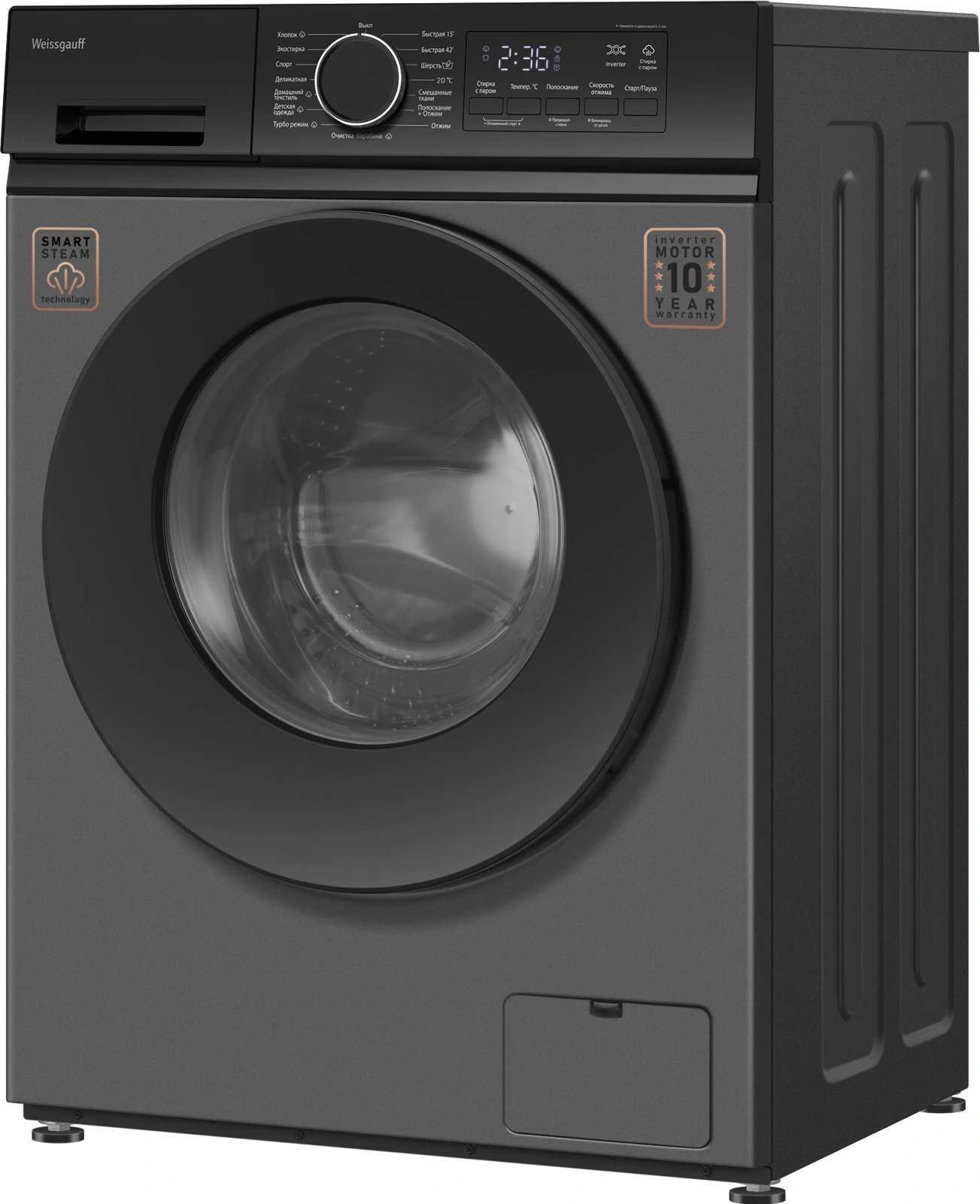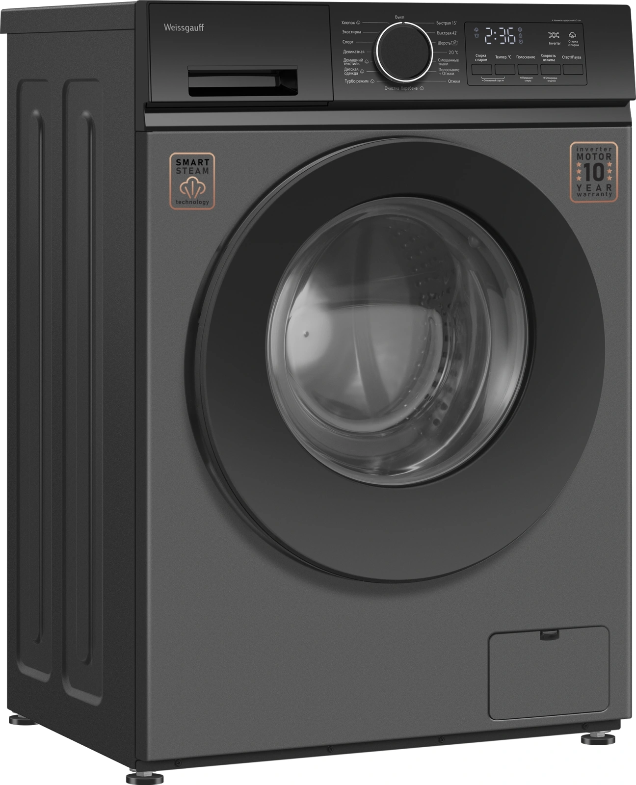Стиральная машина Weissgauff WM 48128 Inverter Steam класс A+++, фронтальная, макс. 8кг, темно-серый, инвертор [438974]