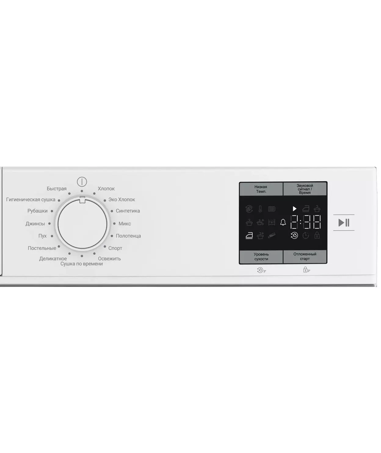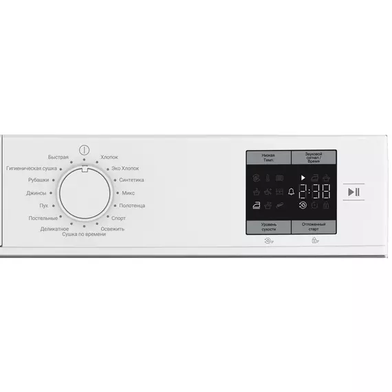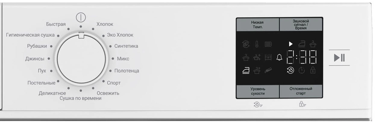 | Программы | хлопок; хлопок Эко; синтетика; Деликатное; Быстро; Освежить; Спорт/верхняя одежда; Рубашки; Полотенце; Постельные; Джинсы; Микс; Гигиеническая сушка |