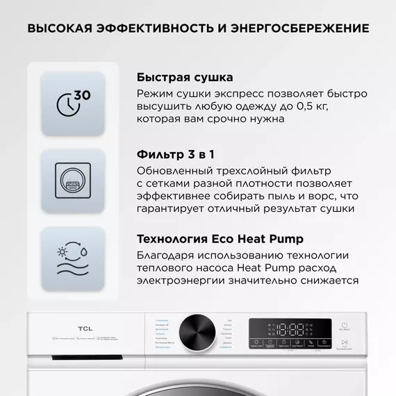 Сушильная машина TCL TDOP-6808W кл.энер.:A++ макс.загр.:8кг белый