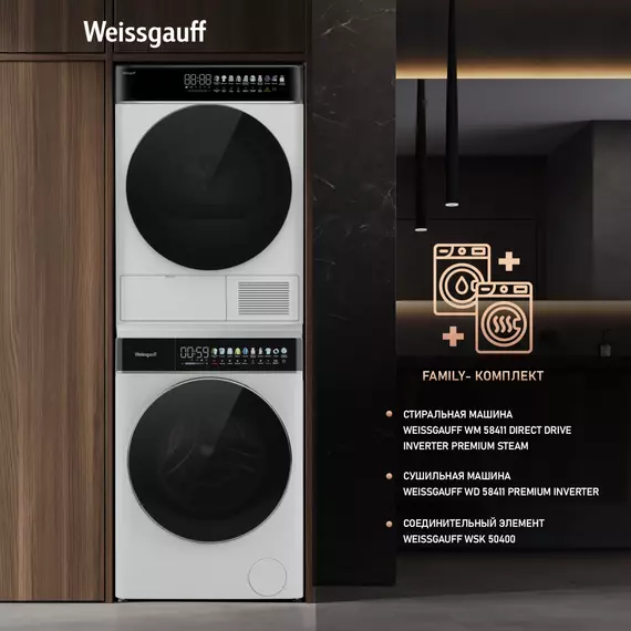 Сушильная машина Weissgauff WD 58411 Premium Inverter кл.энер.:A+++ макс.загр.:8кг белый [438486]