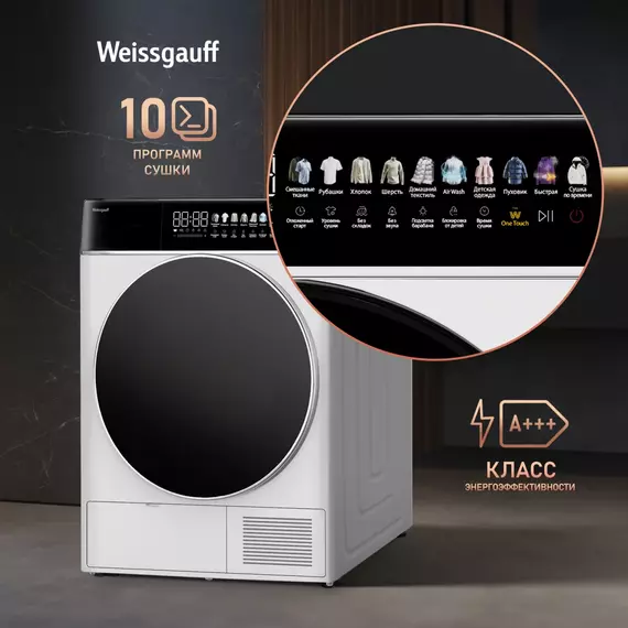 | Программы | Смешанные ткани, Рубашки, Хлопок, Шерсть, Домашний текстиль, Air Wash, Детская одежда, Пуховик, Быстрая, Сушка по времени. |