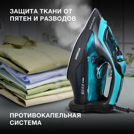 Утюг Hyundai H-SI01221 3000Вт черный/зеленый