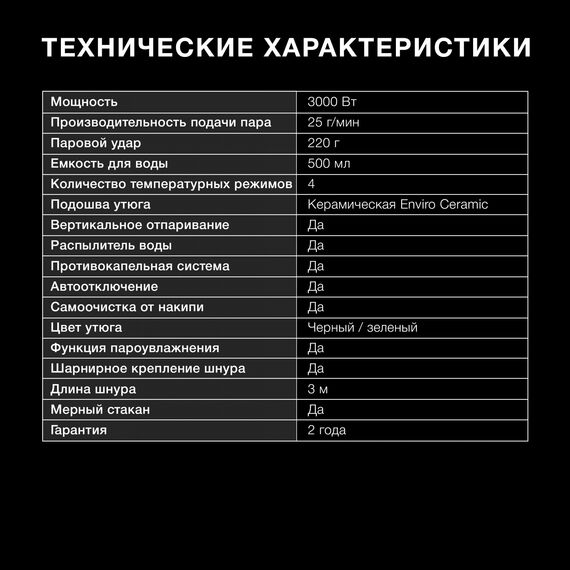 | Цвет утюга | черный/зеленый |