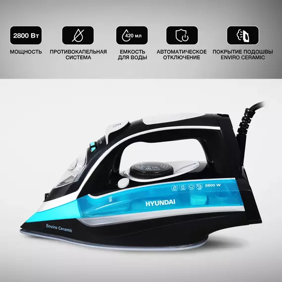 Утюг Hyundai H-SI01336 2800Вт черный/голубой