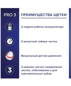 Электрическая зубная щетка нового поколения Oral-B Pro Series 3 обеспечит ощущение профессиональной чистки каждый день. Круглая насадка с технологией щетинок PRO Cross Action, удаляет до 100% больше зубного налета* даже в труднодоступных местах и защищает десны. Характеристики Тип...