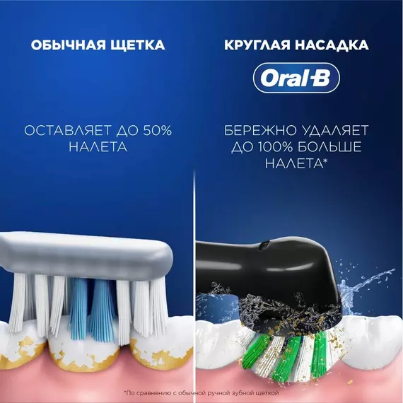 "Электрическая зубная щетка нового поколения Oral-B Vitality PRO обеспечит ощущение профессиональной чистки каждый день и подойдет даже для любителей экстра бережного очищения благодаря уникальному режиму SENSITIVE PLUS. Oral-B Vitality PRO удаляет до 100% больше налета по сравнению с обычной зубной