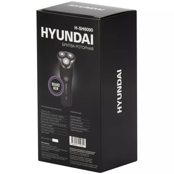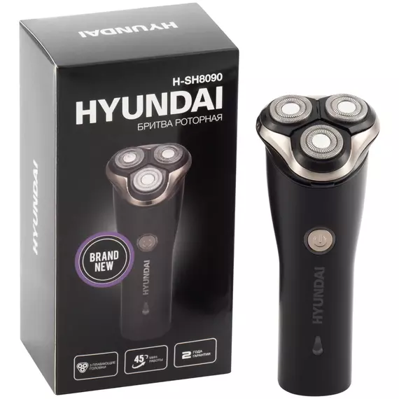 Бритва роторная Hyundai H-SH8090 реж.эл.:3 питан.:аккум. черный/золотистый