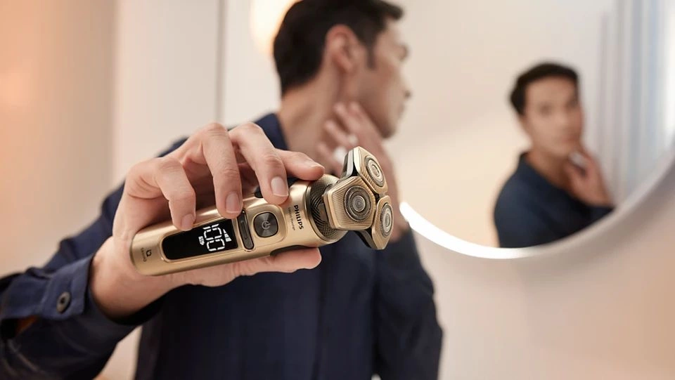 Бритва PHILIPS SP9883/36 реж.эл.:3 питан.:аккум. золотистый/черный