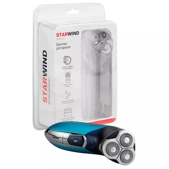 Бритва STARWIND SSH 1525 роторная, реж.эл.:3, питан.:аккум., голубой/черный
