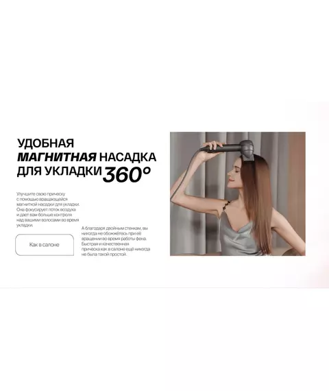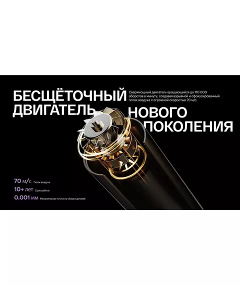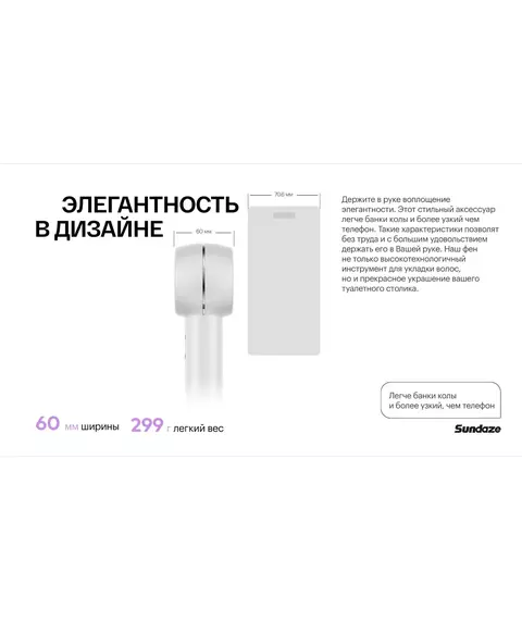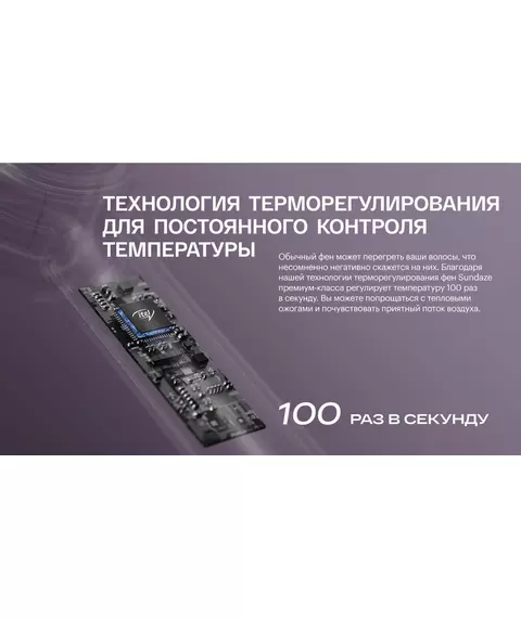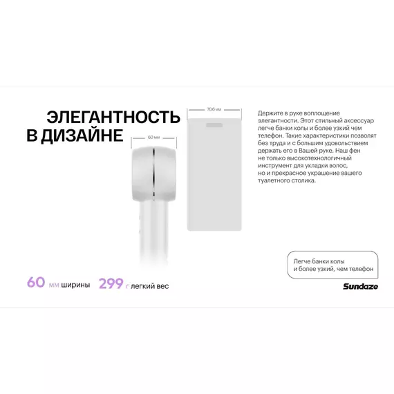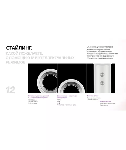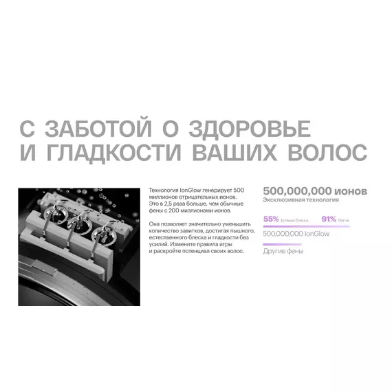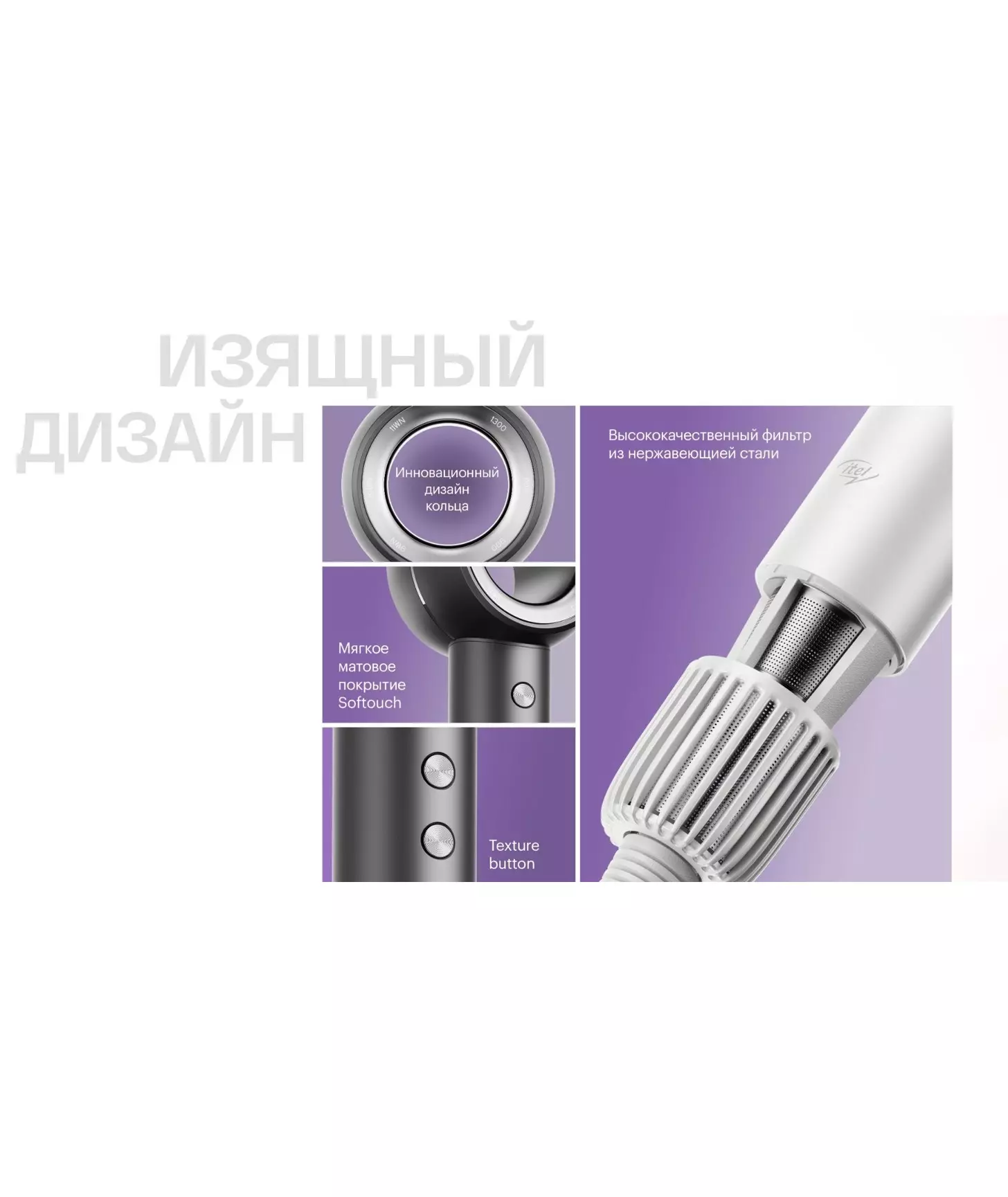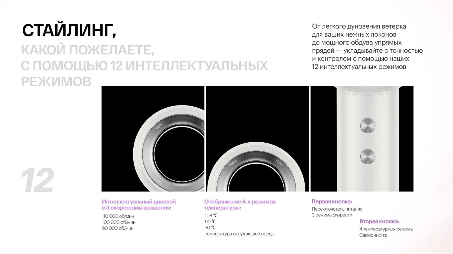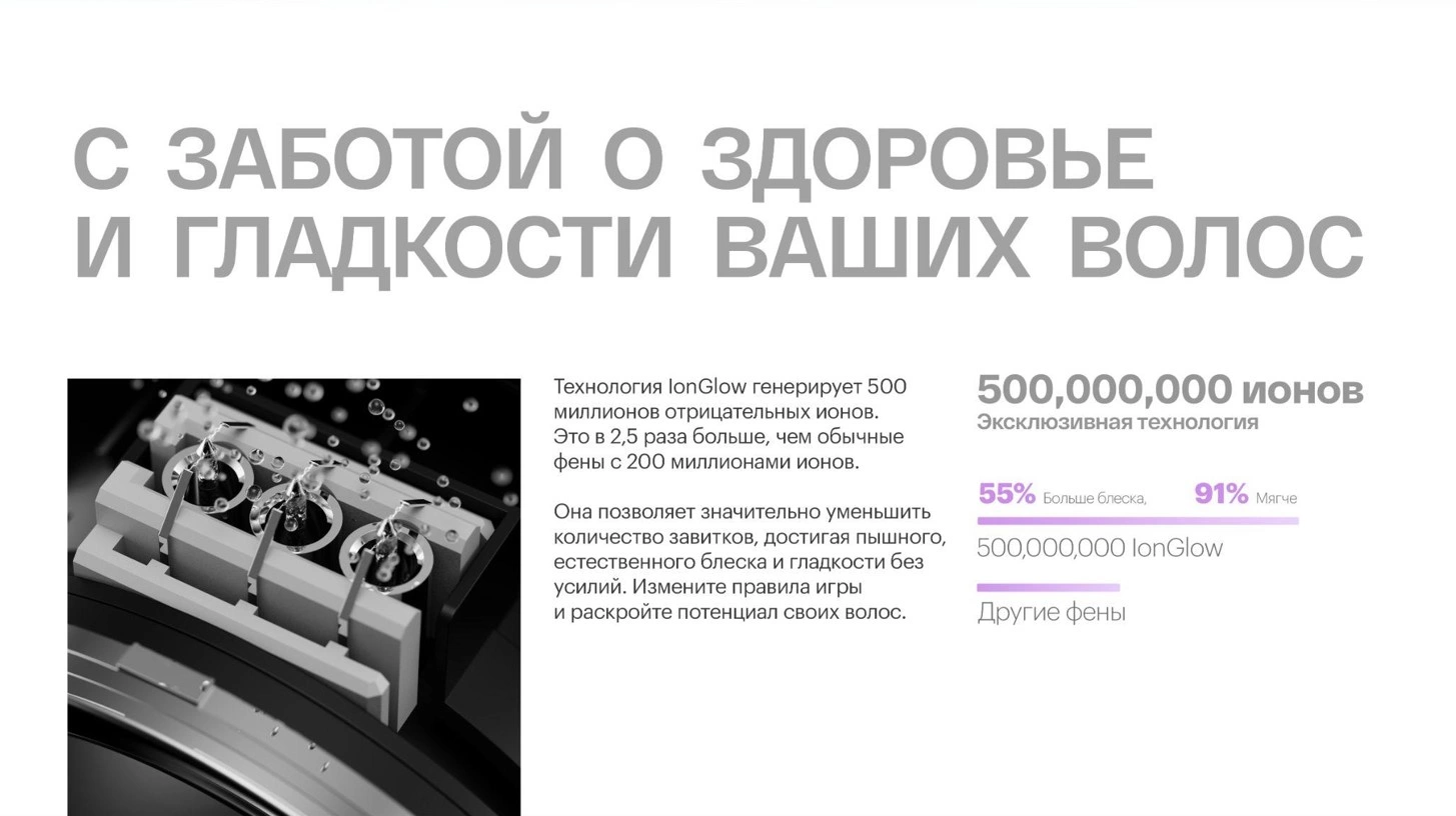 Высокоскоростной фен со скоростью потока 70 м/с, обеспечивает мгновенную сушку волос всего за 2 минуты, 4 температурных режима и 3 режима скорости помогут подстроиться под любой стиль укладки. Стильный и компактный. Бережно сохраняет волосы с 500 млн. негативных ионов и системой терморегулирования