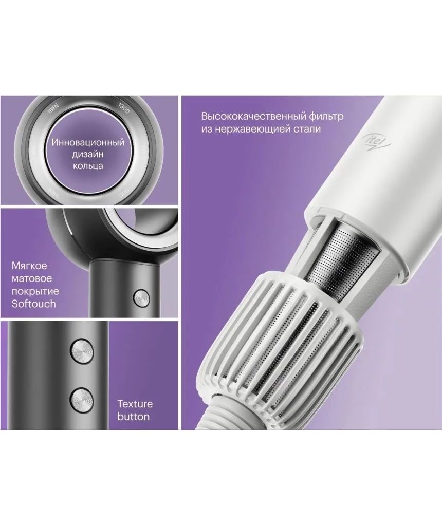 Высокоскоростной фен со скоростью потока 70 м/с, обеспечивает мгновенную сушку волос всего за 2 минуты, 4 температурных режима и 3 режима скорости помогут подстроиться под любой стиль укладки. Стильный и компактный. Бережно сохраняет волосы с 500 млн. негативных ионов и системой терморегулирования