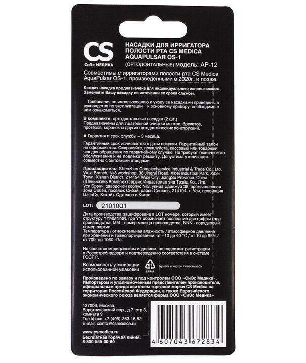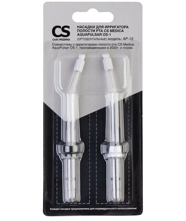 Насадки для ирригатора CS Medica Aquapulsar OS-1 (ортодонтальные) AP-12 (2 шт) предназначены для для эффективного и бережного ухода за брекет-системами и ортодонтическими конструкциями