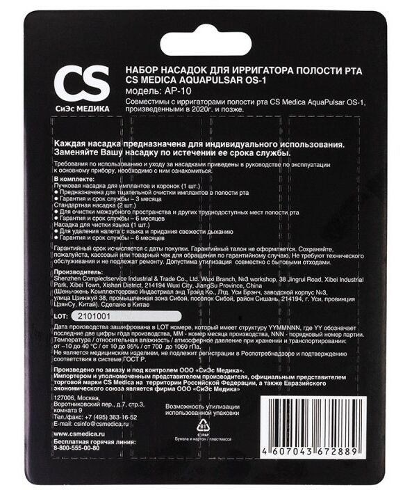 Насадки для ирригаторов полости рта CS Medica Aquapulsar OS-1 AP-10 (4 шт.):