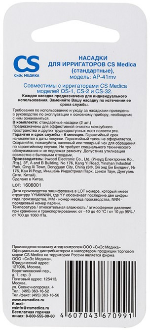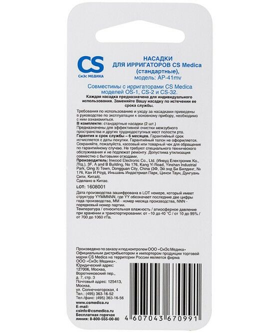 Совместима с ирригаторами CS Medica моделей OS-1, CS-32, CS-2