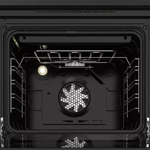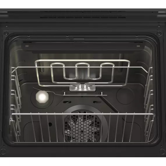 | Особенности | Встраиваемый электрический шкаф с фасадом из нержавеющей стали, 9 режимов работы, тангенциальное охлаждение, механический таймер, подсветка, конвектор, гриль, терморегулятор. |