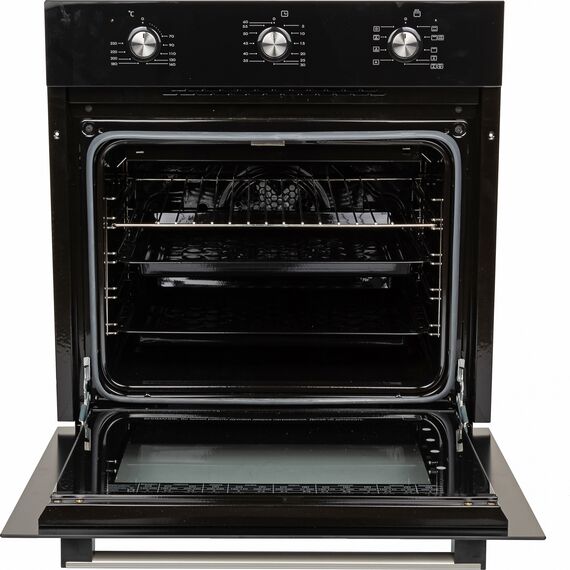 | Особенности | Встраиваемый электрический шкаф со стеклянным фасадом черного цвета, 9 режимов работы, тангенциальное охлаждение, механический таймер, подсветка, конвектор, гриль, терморегулятор. |