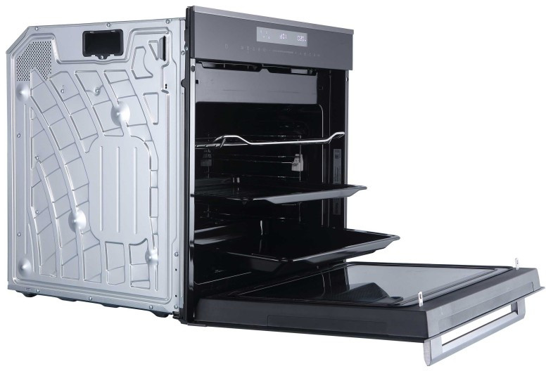- Специальные материалы стекла обладают свойствами защитного экрана, удерживающего тепло внутри камеры, а конструкция дверцы с применением трех стекол позволяет снизить температуру фронтальной поверхности до минимума. Все это снижает потребление электроэнергии и делает приготовление полностью безопасным.