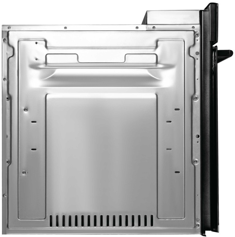 - На задней стенке духовки установлена металлическая пластина со специальным самоочищающимся покрытием, расщепляющая загрязнения, когда камера прогревается до 200°С. Каталитическая панель облегчает процесс очистки духовки от загрязнений.