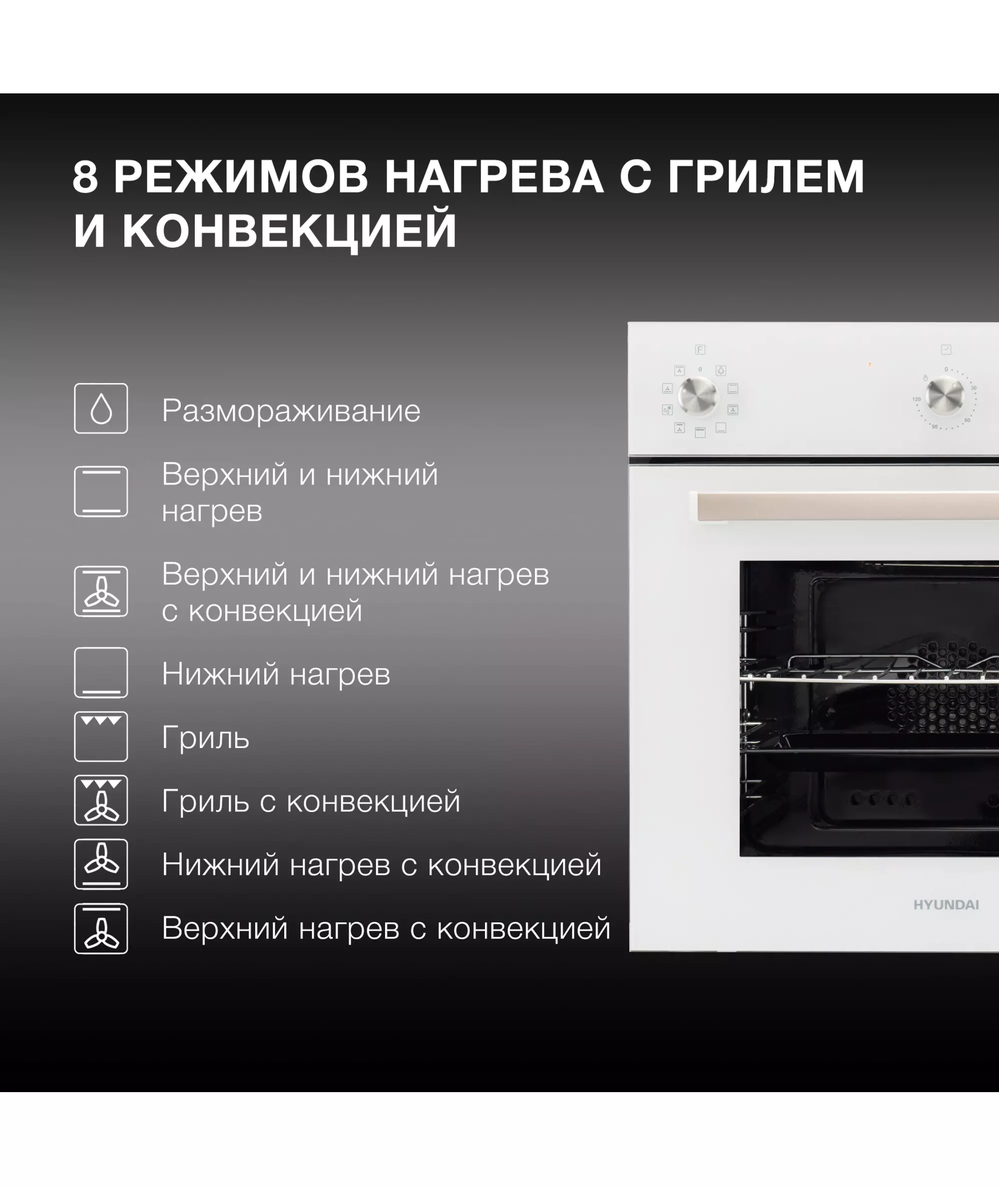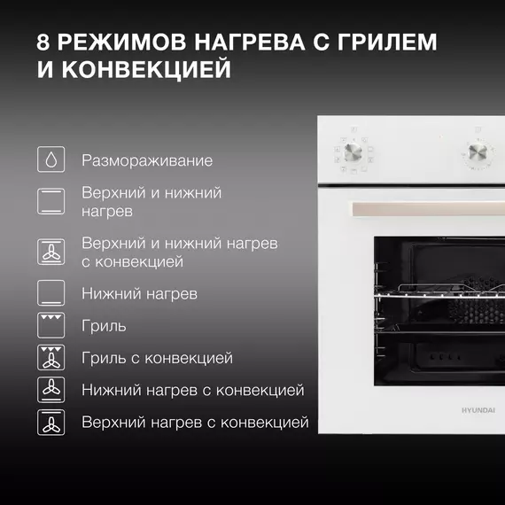 Духовой шкаф электрический Hyundai 6009.03 WG белый стекло