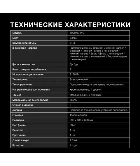 | Объем духовки | 64 л |