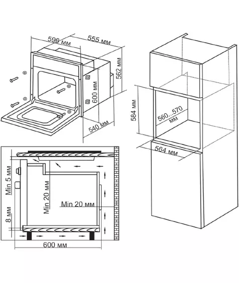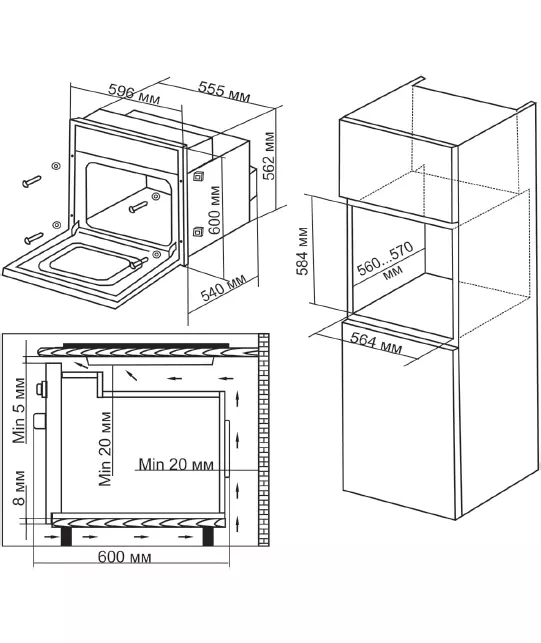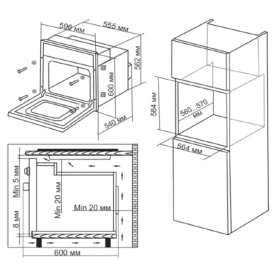 | Размеры для встраивания | 56.4x56x58.4см |