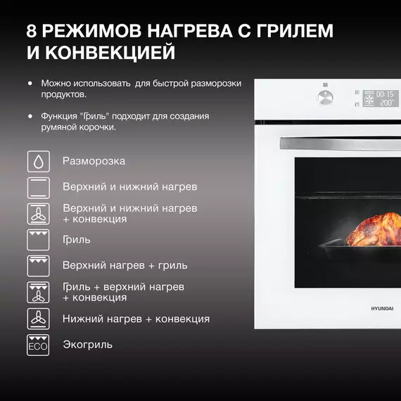 Духовой шкаф электрический Hyundai HEO 6646 WG белый