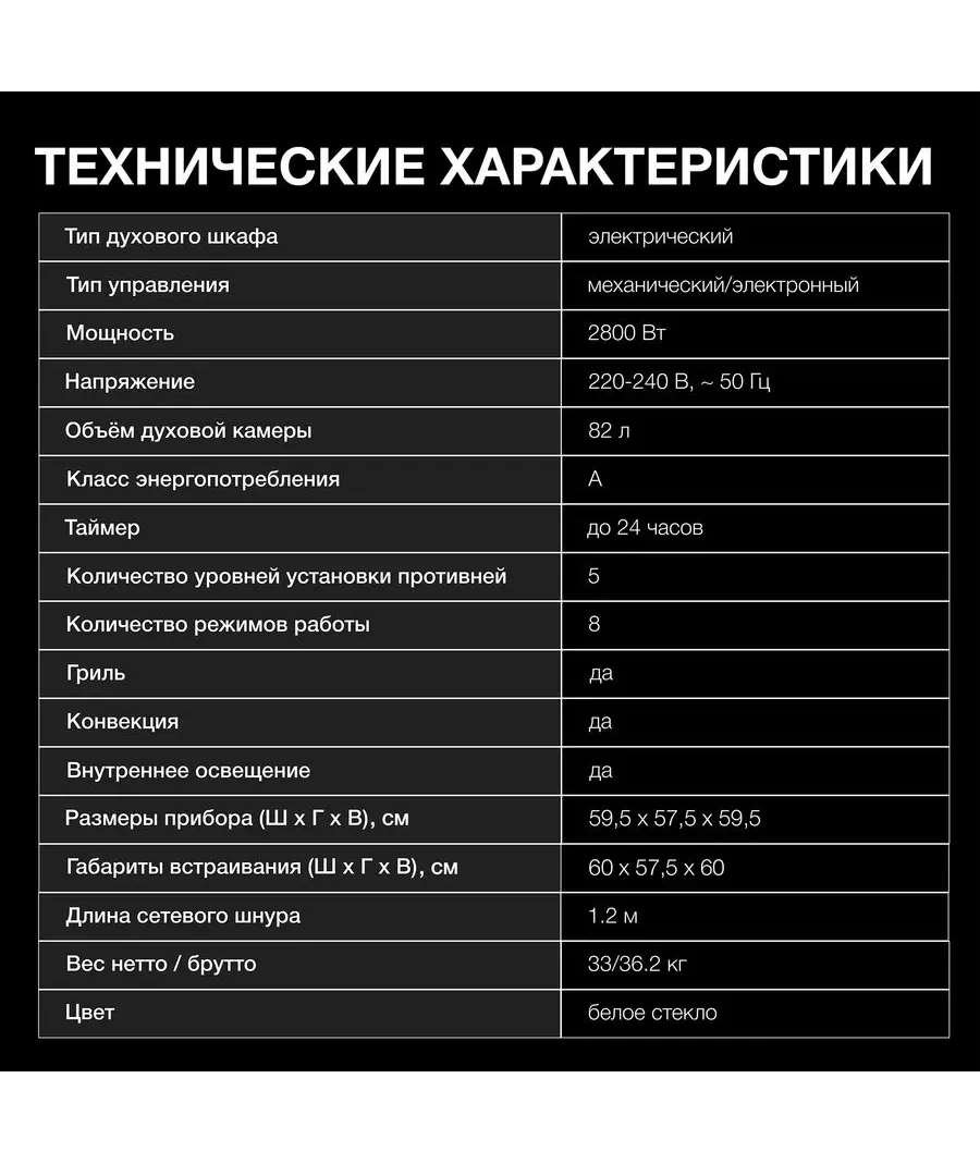 | Объем духовки | 82 л |