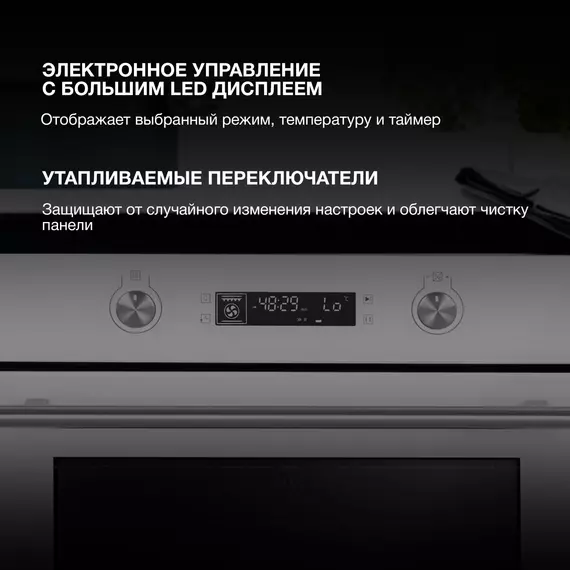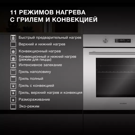 | Режимы духовки | Размораживание, Предварительный нагрев, Верхний и нижний нагрев, Радиальный нагрев, Радиальный и нижний нагрев, Полугриль, Гриль, Гриль с конвекцией, Гриль, верхний нагрев и конвекция, Эко |