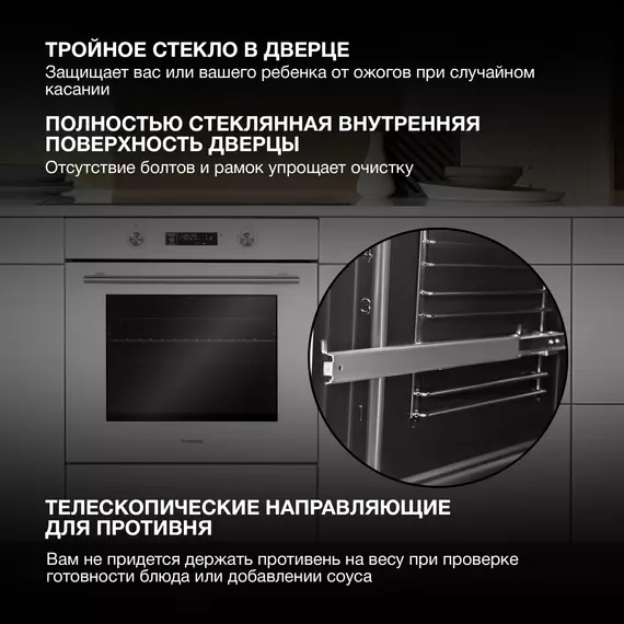 | Полностью стеклянная внутренняя поверхность дверцы духовки | Да |