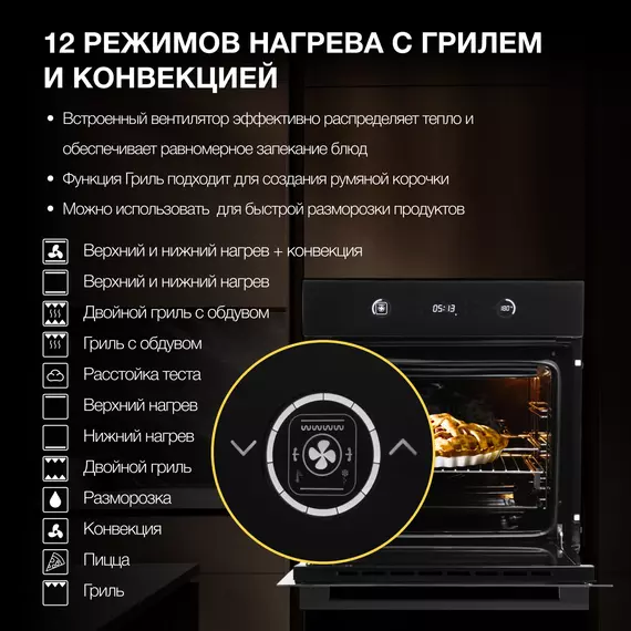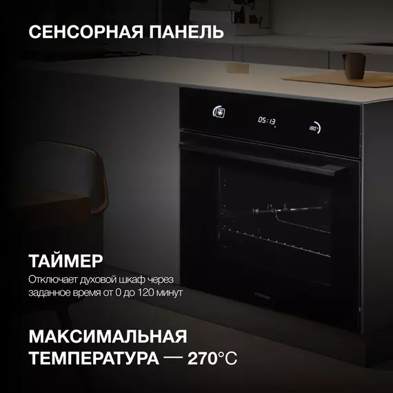 Духовой шкаф электрический Hyundai HEO 6752 BG черное стекло