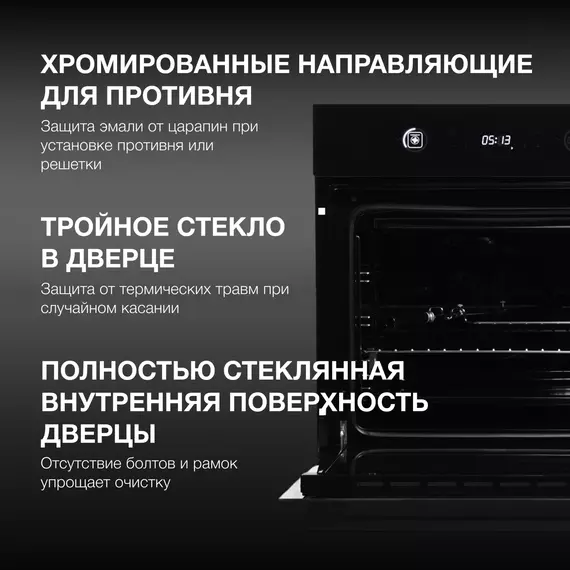 | Полностью стеклянная внутренняя поверхность дверцы духовки | Да |