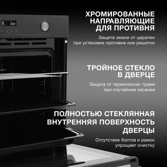 | Полностью стеклянная внутренняя поверхность дверцы духовки | Да |
