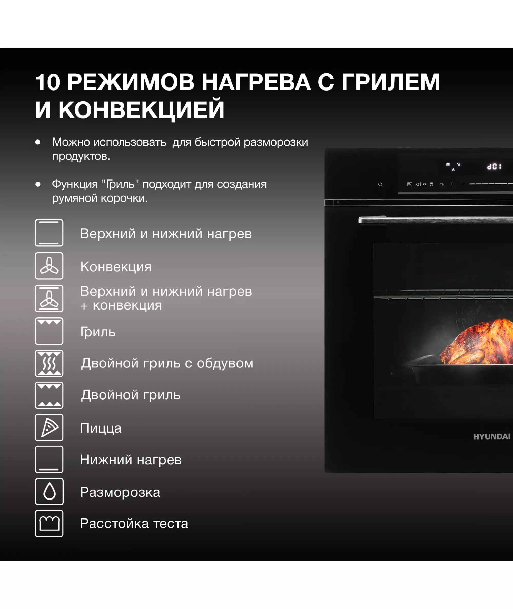 Духовой шкаф Hyundai HMEO 6780 BG черное стекло/серебристый