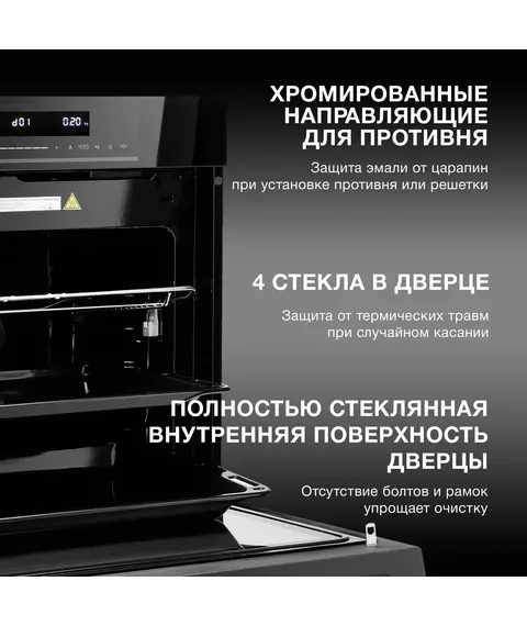 | Полностью стеклянная внутренняя поверхность дверцы духовки | Да |