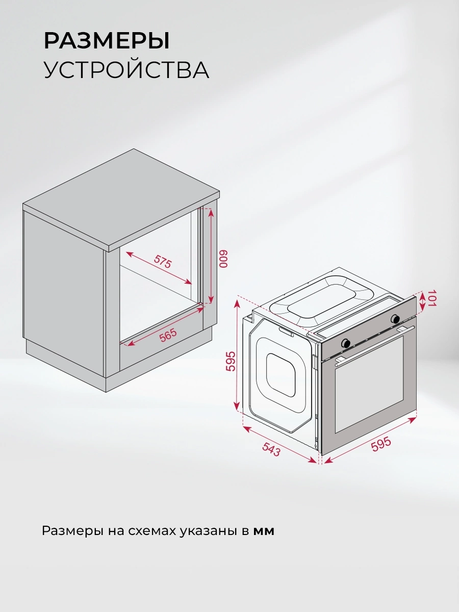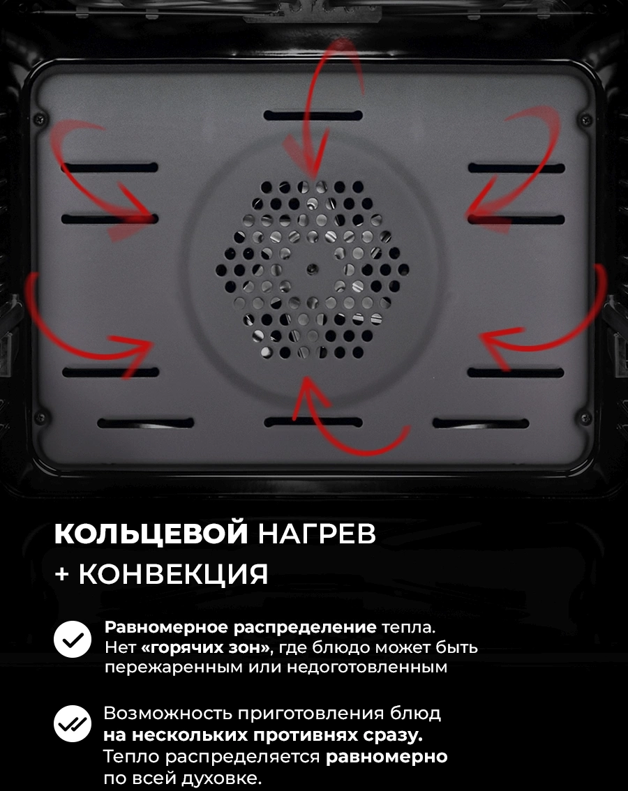 | Режимы духовки | Верхний нагрев, Верхний нагрев с конвекцией, Гриль, Нижний нагрев, Нижний нагрев с конвекцией, Подсветка, Размораживание, Традиционный, Кольцевой нагрев с конвекцией, Традиционныи? нагрев + конвекция |