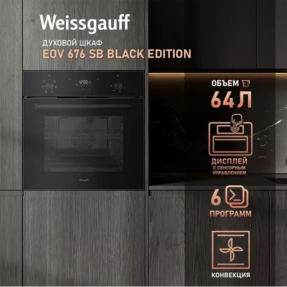 Духовой шкаф электрический Weissgauff EOV 676 SB Black Edition черный