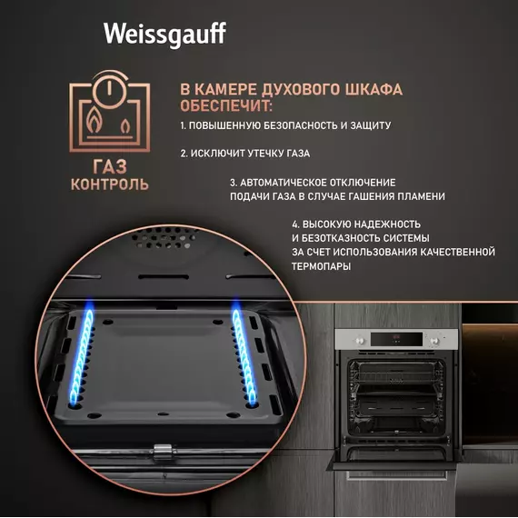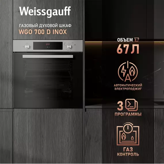 Духовой шкаф газовый Weissgauff WGO 700 D нержавеющая сталь [433192]