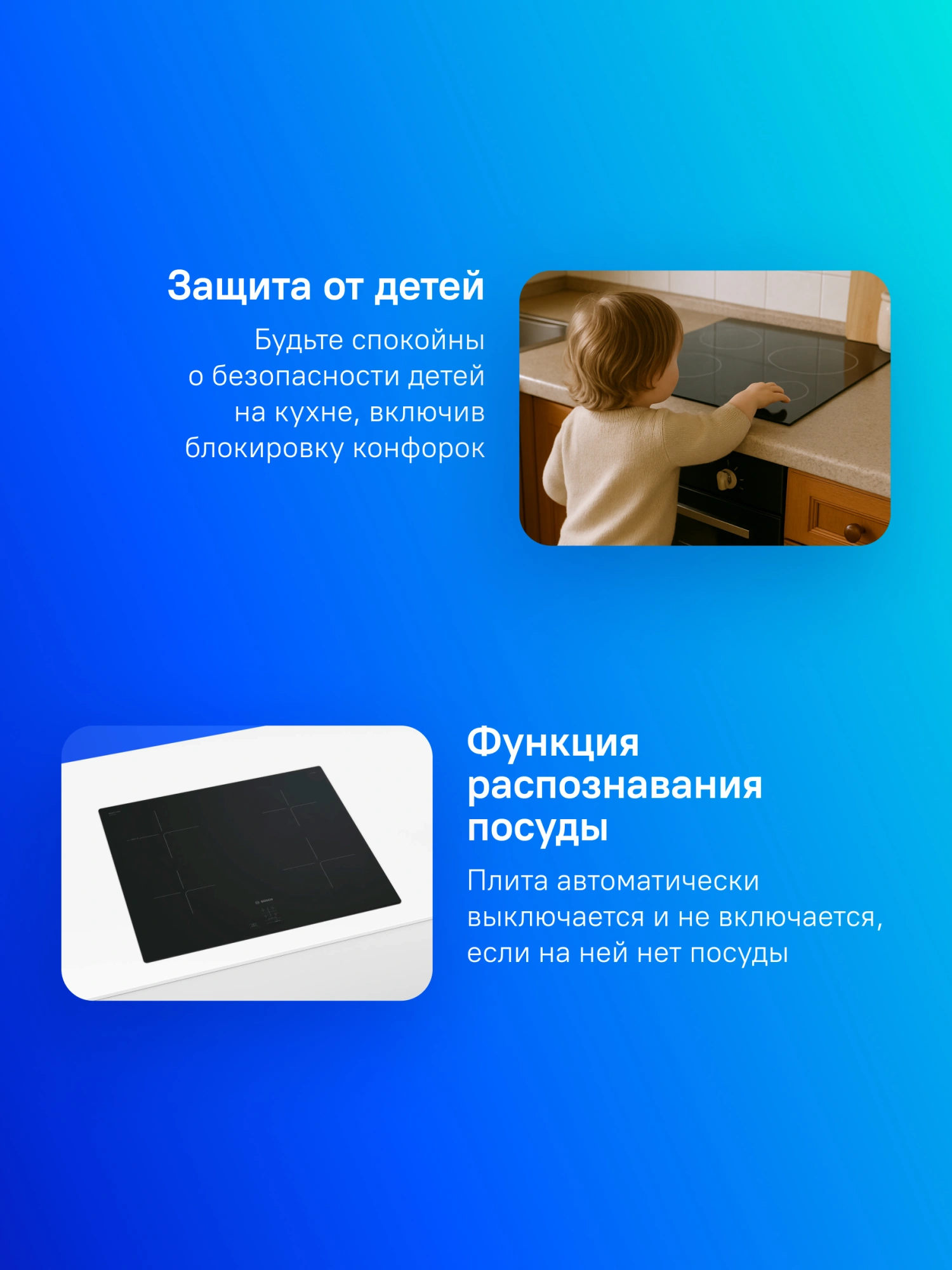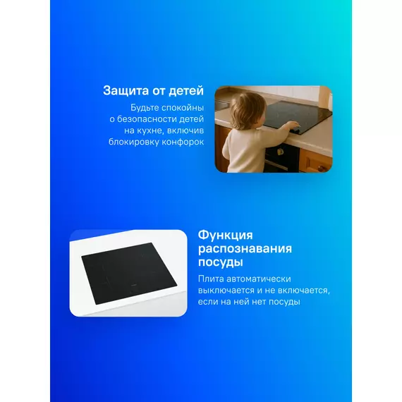 | Безопасность | блокировка управления (защита от детей), защитное отключение, распознавание наличия посуды |