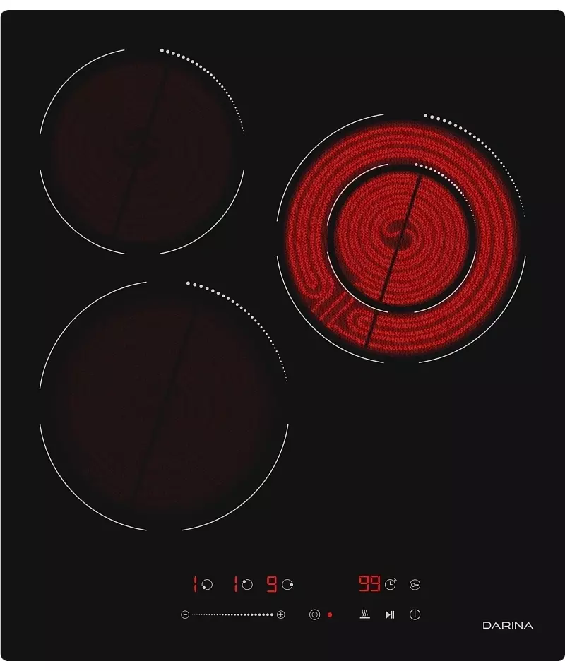 | Мощность (средней конфорки) | 0.9/1.8 кВт |