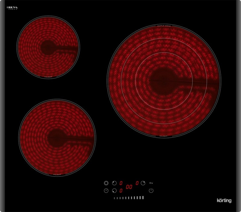 - «Hi-light». Зоны нагрева Korting оборудованы современными нагревательными элементами Hi-light. Конфорка достигает установленной рабочей температуры буквально за считанные секунды, позволяет плавно регулировать мощность