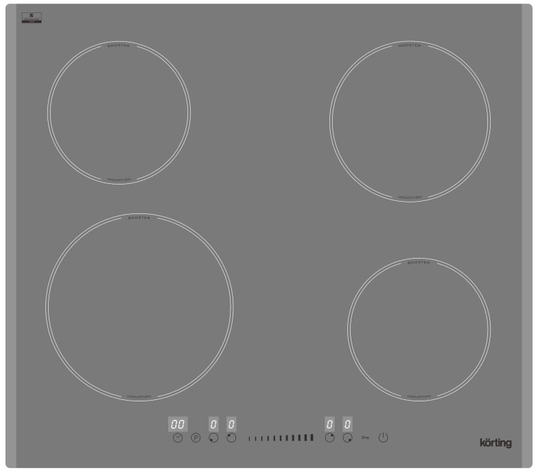 - Körting подумал о безопасности ваших малышей на кухне! Включив функцию «Защита детей» панель управления заблокируется, и маленький непоседа не сможет включить поверхность, это позволит быть уверенным, что не случится беды с подрастающими поварятами.
