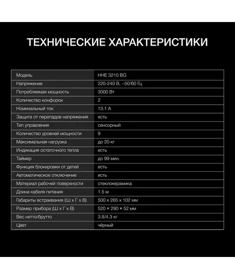 Варочная поверхность Hyundai HHE 3210 BG черный