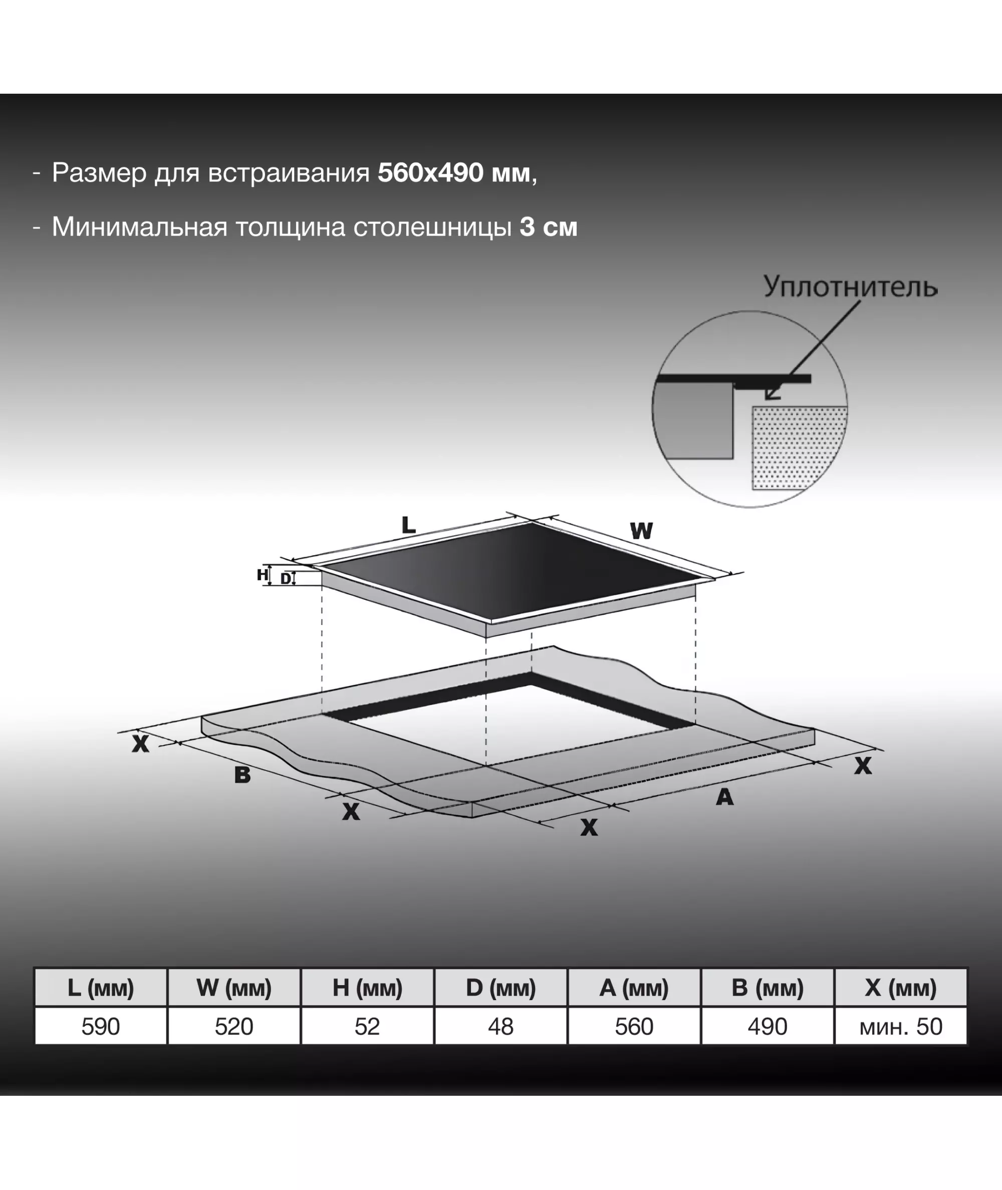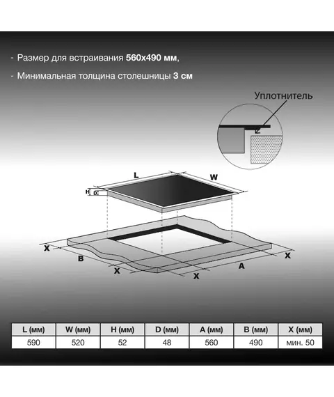 | Установка рабочей поверхности | независимая |