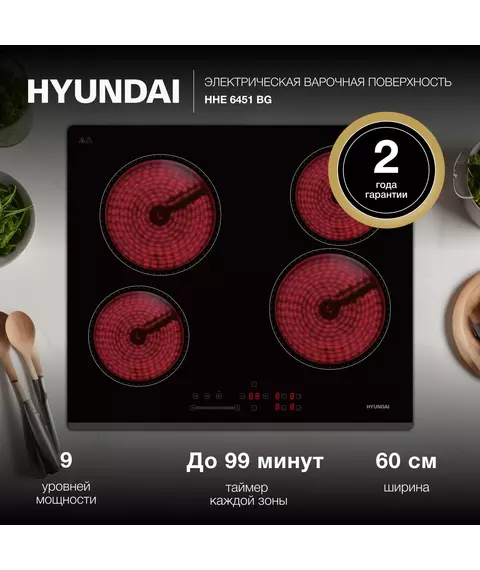 Варочная поверхность Hyundai HHE 6451 BG черный