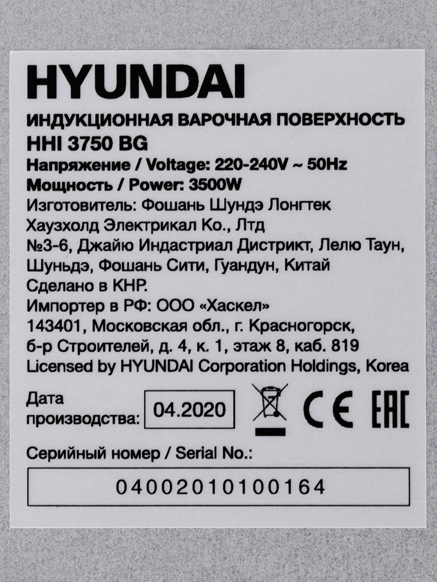 Индукционная варочная поверхность Hyundai HHI 3750 BG черный