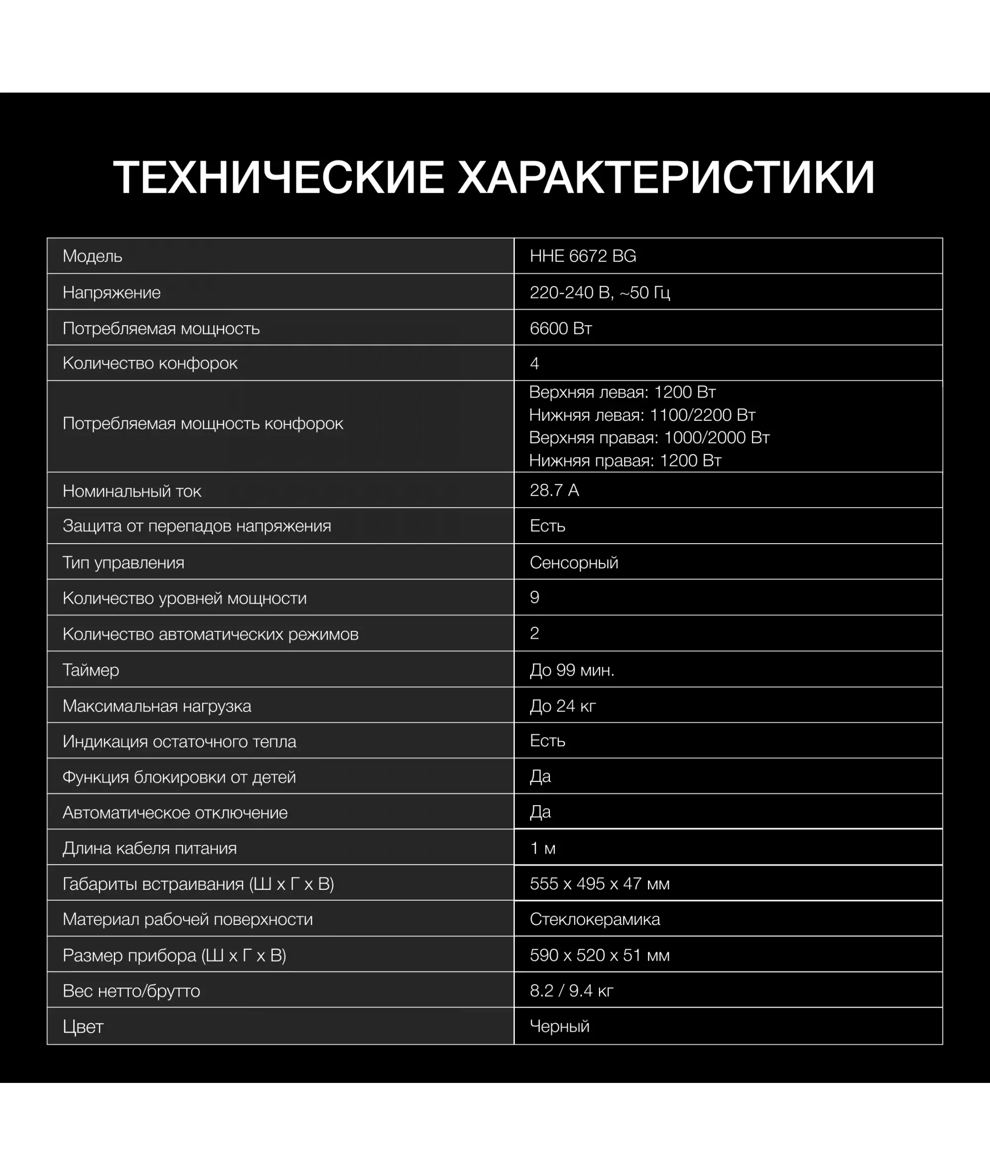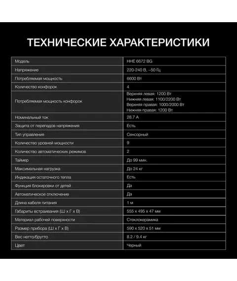 | Тип | Индукционная варочная поверхность |